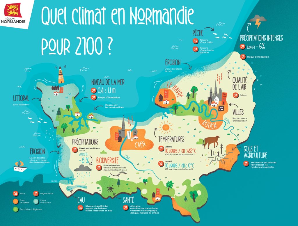 Le GIEC normand, constitué d’experts régionaux (scientifiques et spécialistes) sur les différentes thématiques liées au climat et à son évolution, a pour but de traduire les prévisions du GIEC (Groupe d’experts intergouvernemental sur l’évolution du climat) international pour le territoire et de faire la synthèse des travaux scientifiques locaux existants sur ce sujet (données mesurées et projections à l’horizon 2050-2100). Ces prévisions auront pour but de se préparer aux impacts du changement climatique et de faire en sorte que le territoire, ses acteurs et ses habitants s’y préparent.