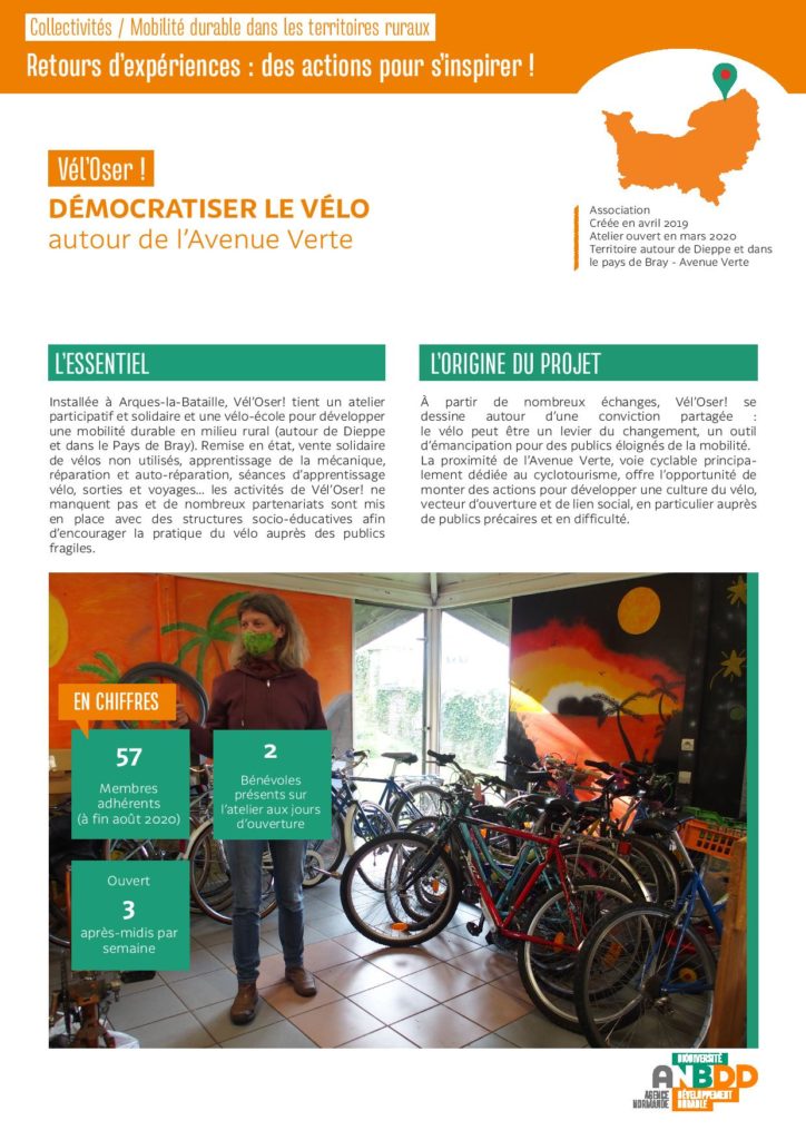 Installée à Arques-la-Bataille, Vél’Oser! tient un atelier participatif et solidaire et une vélo-école pour développer une mobilité durable en milieu rural (autour de Dieppe et dans le Pays de Bray). Remise en état, vente solidaire de vélos non utilisés, apprentissage de la mécanique, réparation et auto-réparation, séances d’apprentissage vélo, sorties et voyages… les activités de Vél’Oser! ne manquent pas et de nombreux partenariats sont mis en place avec des structures socio-éducatives afin d’encourager la pratique du vélo auprès des publics fragiles.